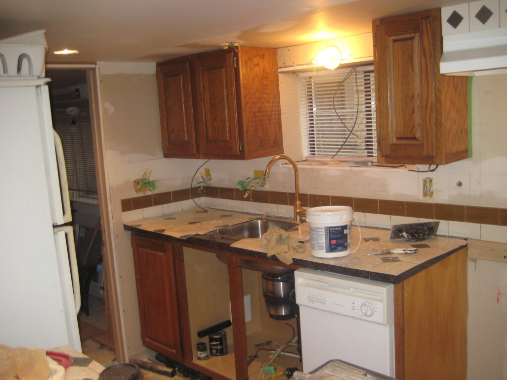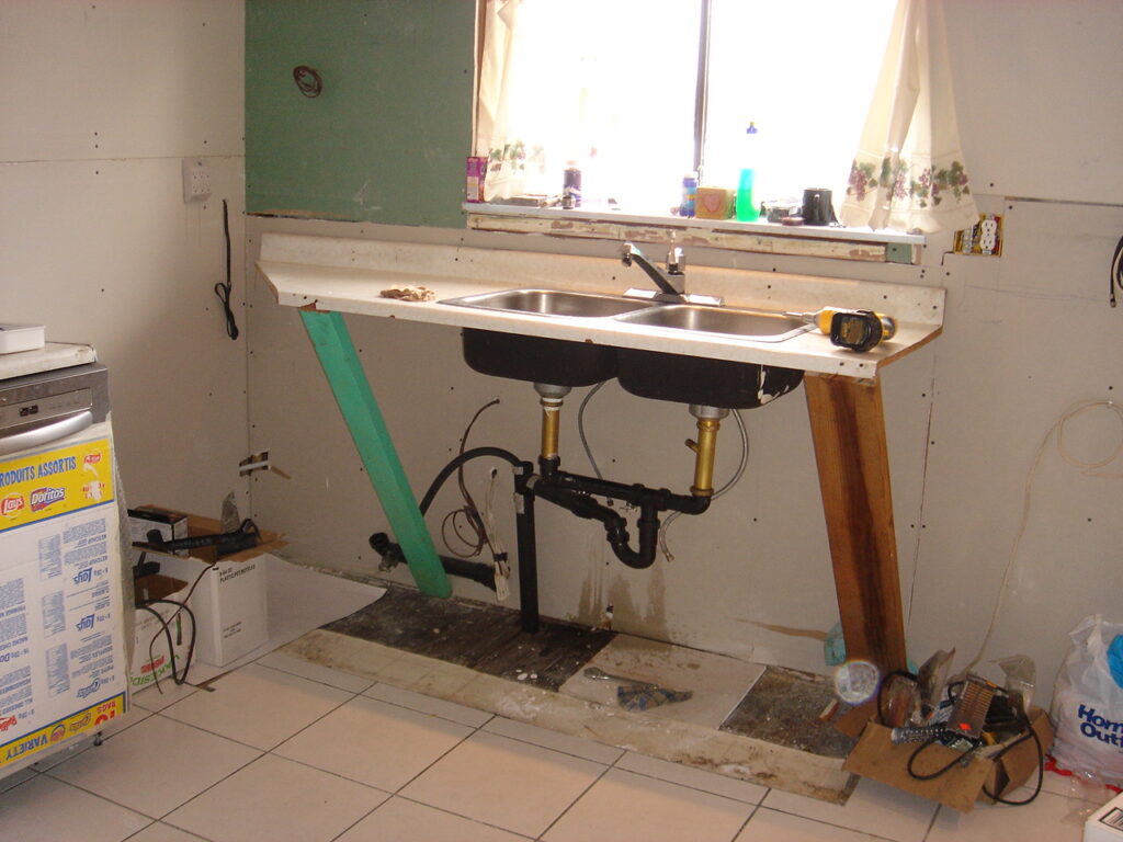 Temporary Kitchen sink set up in a working kitchen in one of my many typical house renovations