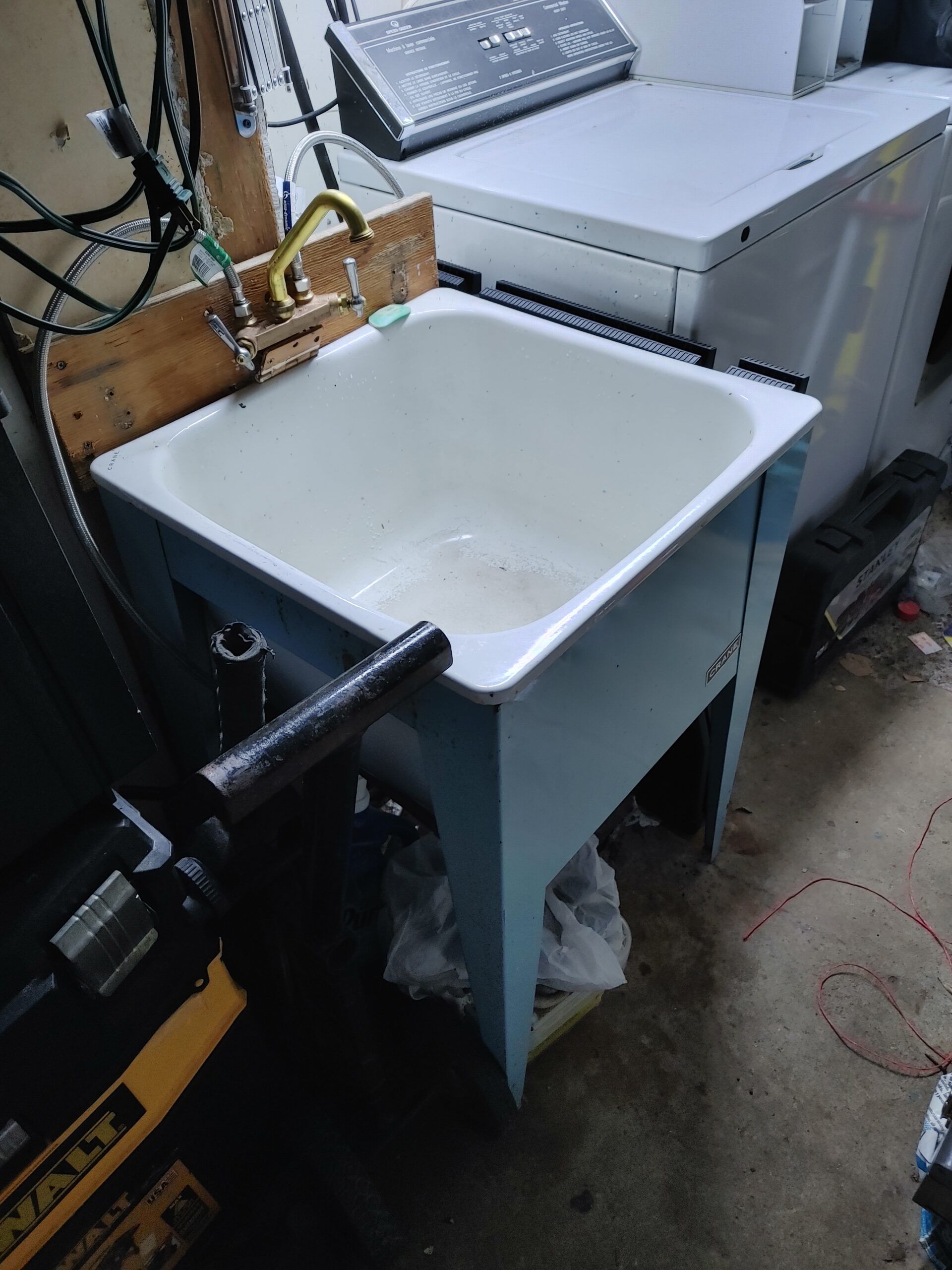 Also found in different location a 60 old brand new in its original box delta faucet that fits this wash tub with one screw support bracket.